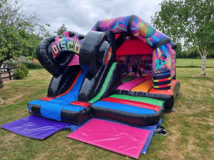 This brilliant Disco themed 3D front slide is bursting with vibrant colour and amazing high quality printed artwork. A perfect addition to any celebration where the kids can bounce around and enjoy their very own Disco inside an inflatable!