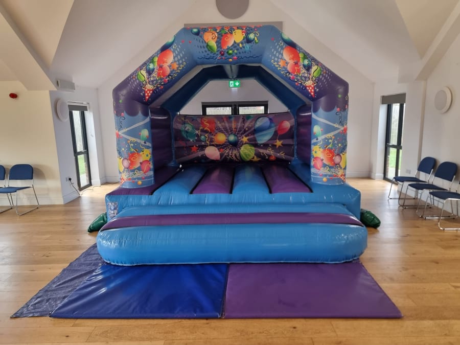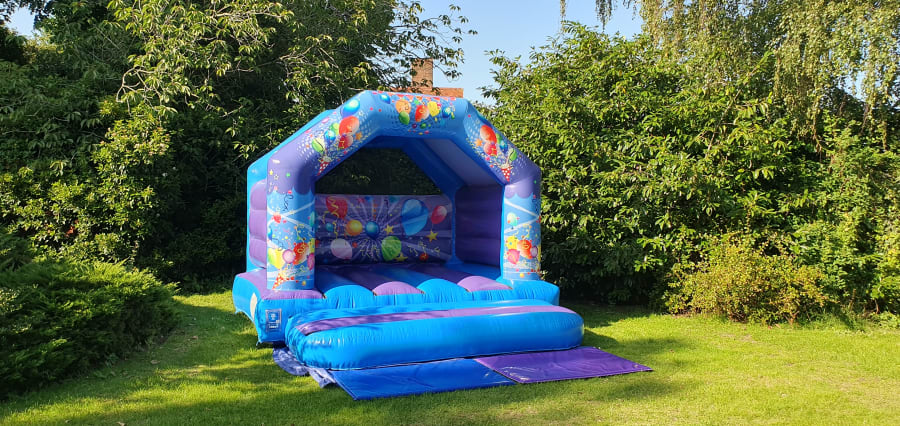 Due to popular demand we have added this 12 x 12 party castle! Our most popular sized castle, with its brilliant digital artwork of balloons, a great neutral theme for any gender to enjoy a birthday party, christening, family BBQ day or anything else! Its size makes it the ideal choice for those smaller gardens, or if you want to keep some space for other activities. This castle also has a built in shower/sun cover to help with the great British weather.