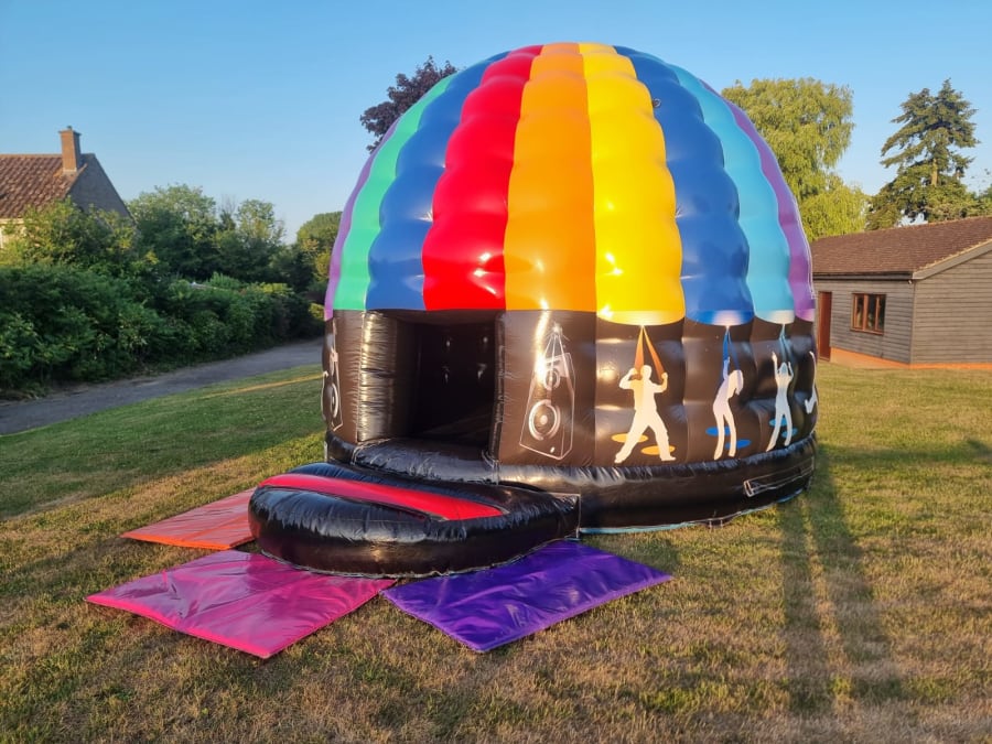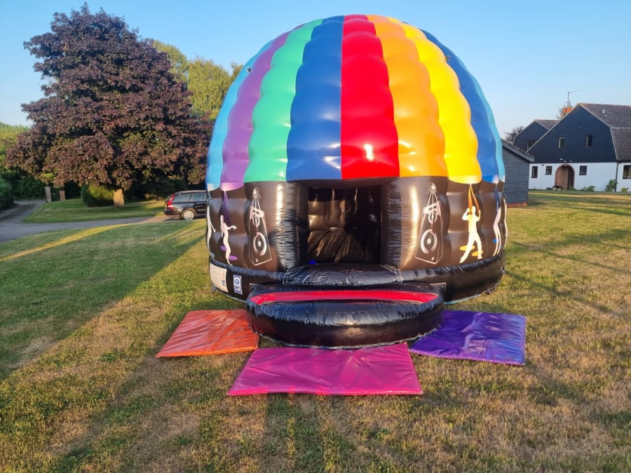 Our dome is as colourful as it is big, and its a whopper! Be sure to wow the guests when they arrive and see this impressive castle inflated and booming out whatever tunes you desire.